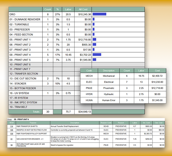 Our reports use straight up data and not flashy charts. These views allow you to select the rows and information to display the related information. Reports such as Work Order Activity, Asset Drilling, Monthly Completions, Base on Reason Codes, etc. |