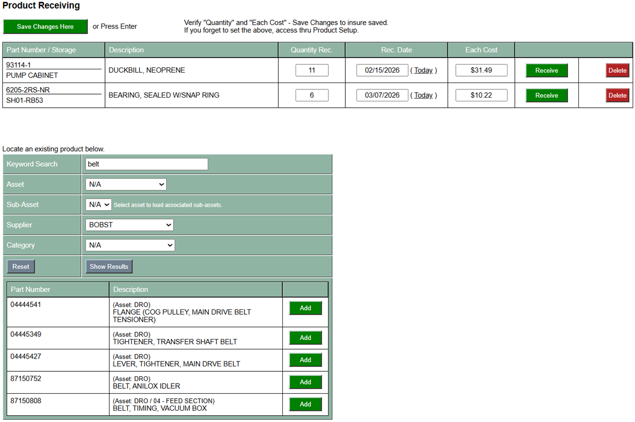 | If you forget to update the quantity, received date or the cost, you can edit these details through the product details area. |